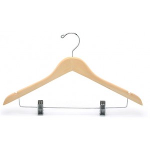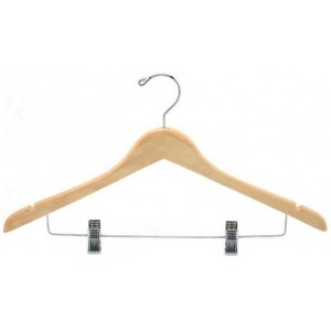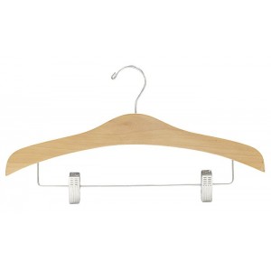 Natural Finish Chrome Hardware 17" Length 1/2" Thick Beautiful contoured combination clothes hangers are made from natural wood and chrome. The high quality chrome bar an clips are fitted with...Price: