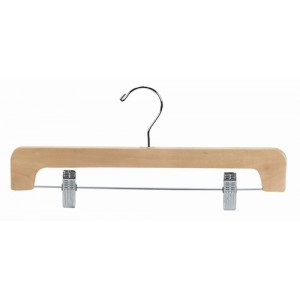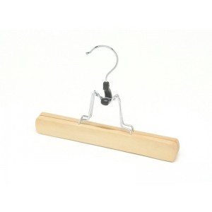 Natural Finish Chrome Hardware 9" Length 3/4" Width These hangers have a space saving design, are made of solid hardwood and have a swivel polished chrome hook. The Clamp Style Pant/Skirt Hanger...Price: