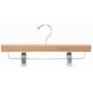 Natural Finish Chrome Hardware 14" Length 1/2" Thick These flat wood pant/skirt hangers have a chrome swivel hook and chrome bar with adjustable non-staining clips for hanging...Price: