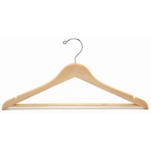 Natural Finish Chrome Hardware 17" Length 7/16" Width Our flat suit hangers have a solid wooden pant bar and chrome swivel hook. Notches in shoulders are designed...Price: