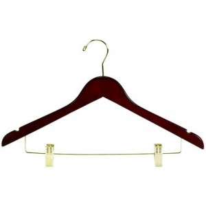 Walnut Wood Finish Brass Hardware 17" Length 1/2" Width Beautiful contoured combination clothes hangers are made from hardwood and feature brass hardware. The high quality brass bar an clips are...Price: